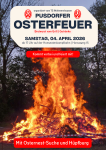 Osterfeuer in Pusdorf – Das Original Auch in diesem Jahr laden wir euch herzlich zu unserem traditionellen Osterfeuer in Pusdorf ein. Seit vielen Jahren ist unser Osterfeuer ein fester Treffpunkt für Nachbarn, Freunde und Familien, um gemeinsam einen schönen Abend zu verbringen und den Frühling willkommen zu heißen.Damit auch unsere kleinen Gäste auf ihre Kosten kommen, starten wir bereits ab ...