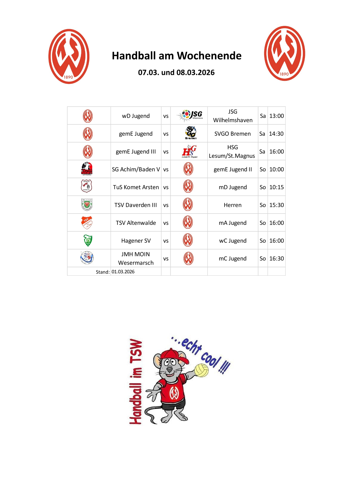 auf 29:28 heran. Nervös geworden schlossen wir unsere Angriffe viel zu früh und überhastet ab. Zwar konnte Lea Sasse in der 57. Minute mit ihrem achten 7-Meter-Tor auf 30:28 stellen, aber die Gäste netzten 32 Sekunden vor Abpfiff zum Anschluss ein. Nach unserem verworfenen 7-Meter 13 Sek. vor Ende mussten wir in der letzten Sekunde noch den Ausgleichstreffer hinnehmen. Im Spiel gegen den Absteiger aus der Landesliga SG Findorff zeigten wir wieder unsere alte Stärke. Mit drei Toren in Folge (Conrad (2), Dudek) zwangen wir die "Füchsinnen" in der 14. Minute zur Auszeit. Zur Pause erarbeiteten wir uns einen 15:11 Zwischenstand. Mit einer guten Abwehrleistung und Chancenverwertung bauten wir den Vorsprung in der zweiten Halbzeit weiter aus. Mit 4 Treffern in Folge (Binseel (3), Brüning) entschieden wir das Spiel frühzeitig. Auch die folgende doppelte Unterzahl verhinderte nicht den verdienten 32:25 Sieg.