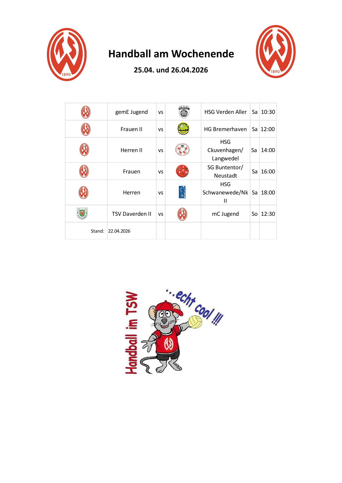 TSW: Maciolek, Harland (6), Noack (2/2), Arslan (1), Rempe (9/1), Preetz (8), King (9), Struckmann, Himmelskamp (12/1)