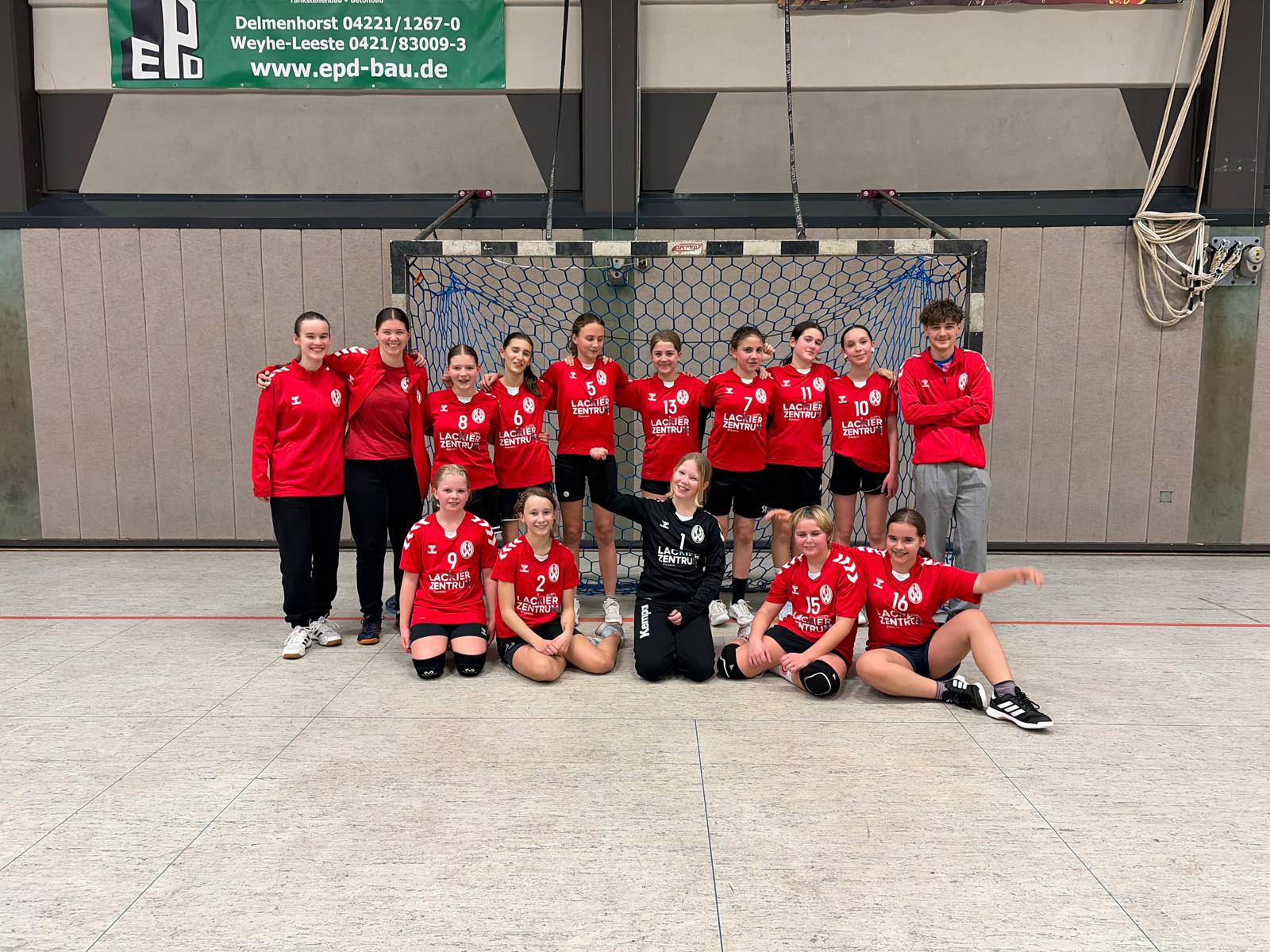 Neue Liga – 1. Sieg Über die Vorrunde hatte sich die wE-Jugend für die Regionsliga qualifiziert. Im ersten Spiel ging es auswärts gegen die TS Hoykenkamp. In der 4. Minute hatten wir uns durch Selin Altun einen 3-Tore-Vorsprungg erspielt. Sechs Minuten später erhöhte Mia Tabeling per 7-Meter auf 5:9. Trotz des Rückstandes gaben die Mädels … Weiterlesen